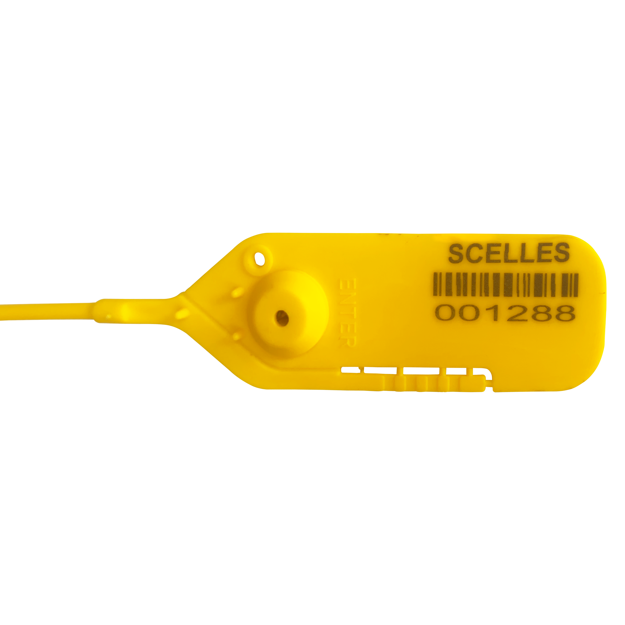 Precinto de material plástico, fácil de reciclar y ajustable con más de veinte posiciones de bloqueo, es extraible con cortadores de pernos/cables ( es necesario protección para los ojos).
